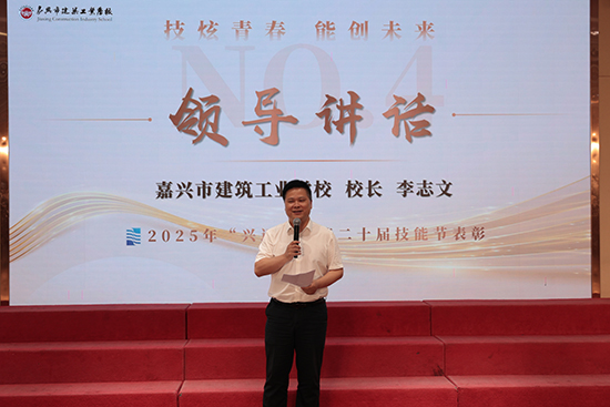 5月29日下午,在嘉興市建筑工業學校鼎建報告廳,舉行2025年“興遠杯”第二十屆技能節閉幕式。校長李志文,副校長龔磊、葛魁、劉葉海,紀委書記陳衛明出席了本次閉幕式。學校邀請技能節冠名單位浙江興遠建設有限公司辦公室主任王巧平, 嘉興職業技術學院 城市建設學院院長谷偉、副院長阮雪琴攜手共同見證了這次匠星閃耀的時刻,現場熱烈的氣氛點燃了每位學子的匠魂。