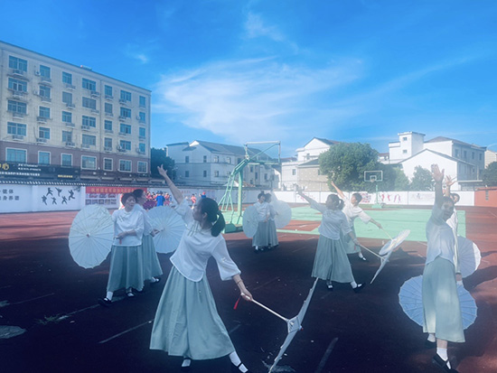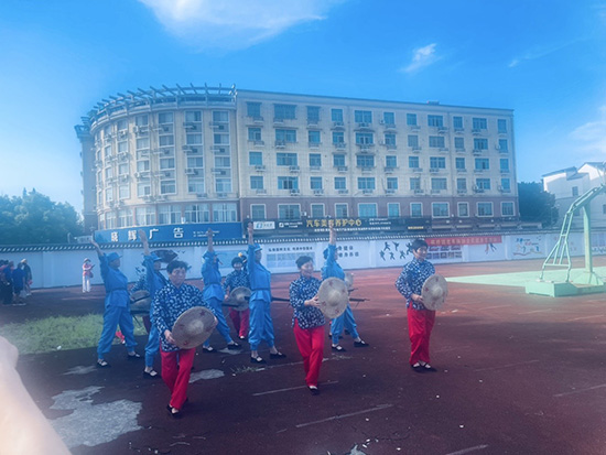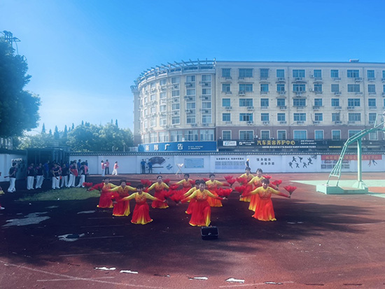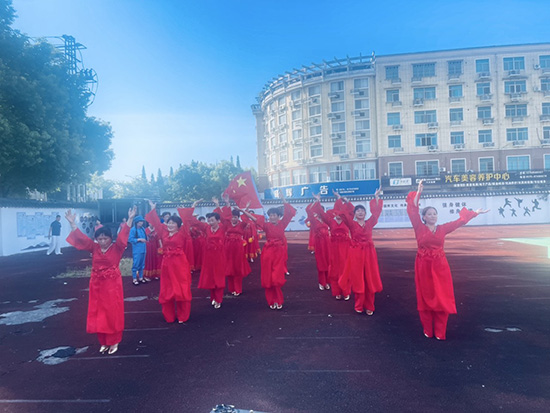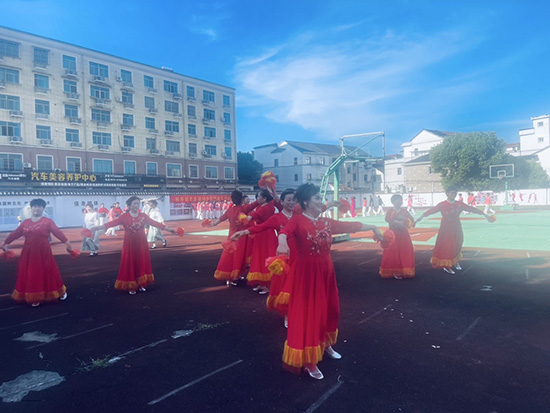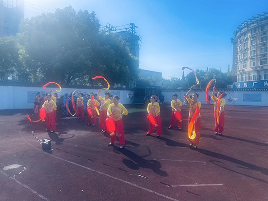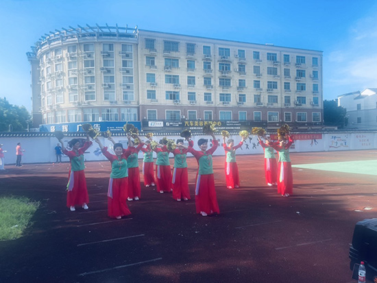 楓之韻藝術團團長駱幼君帶著成員合著節拍跳起快樂舞步健身操,在激情的音樂聲中隊員們做著韻律的動作,舞動輕盈的身姿,在場人員紛紛拿起手機拍照。邊上40多人的王冕太極拳隊擺起方陣展示二十四太極拳,隊員隨著典雅的音樂舒展身姿,宏大的陣式、劃一的動作,展示出太極拳極大的魅力,還有四十二式、太極劍表演。那里,永寧兜球基地的隊員正在展示兜球技藝,10個球在隊員手中嫻熟地拋入網兜中,贏得周邊人員的陣陣喝彩。那邊,柔力球的隊員正在球網兩邊角逐,那個球聽話似在手拍中舞動,種種技巧展示出隊員們熟練的動作。每個場地上到處洋溢著歡笑聲。最熱鬧的當數舞蹈場地,海角社區舞蹈隊、樓家社區舞蹈隊、馬嶺村舞蹈隊、新東塢村舞蹈隊、百樹社區舞蹈隊、樂山村舞蹈隊、東三姐妹舞蹈隊及楓橋夕陽紅舞蹈隊,每支隊的隊員們好像憋著一股勁,不是比賽卻勝似比賽,爭奇斗艷,都拿出自己的看家本領,不顧天氣炎熱,身著盛裝合著音樂的節拍舞動矯健的身姿,展示不同的舞種,在不同的音樂風格,充分展示自己的風采,贏得在場人員紛紛拍照、鼓掌,每一個場地都體現“我運動 我健康 我快樂”。