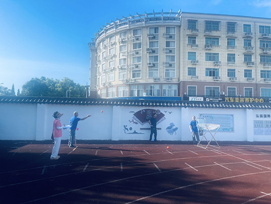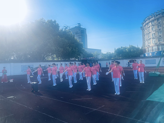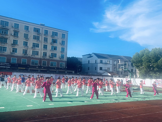 “今天我們齊聚一堂,共同迎來8月8日的全國第十七個‘全民健身日’和諸暨市第十八屆全民健身節。全民健身、健康你我。為積極倡導健康向上的生活方式,提高我們的身體素質。今天我們組織大家在這里舉行健步走、廣場舞、太極拳、兜球和柔力球的全民健身日活動,再一次充分展示出體育和健身的蓬勃激情與無窮魅力……”諸暨市楓橋鎮老年體協主席葛世良在楓橋鎮老年學校田徑場上作動員講話。