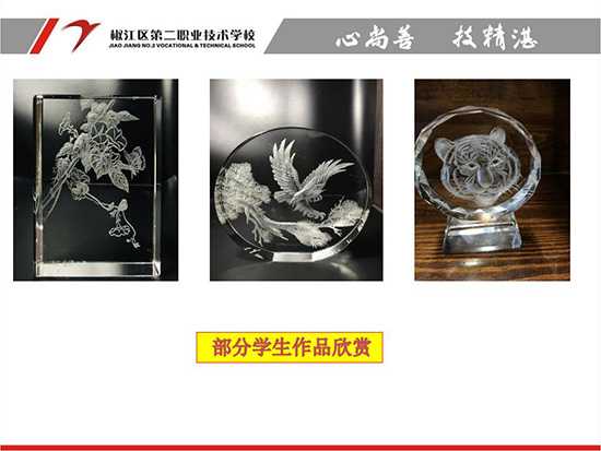 六是作品展示,主要內(nèi)容通過所學(xué)的玻璃雕刻技藝自由創(chuàng)作,通過自評,互評,師評方式選出各類優(yōu)秀作品進行評點展示,激發(fā)學(xué)生的創(chuàng)作熱情。通過開展作品的展示活動,給學(xué)生創(chuàng)造一個互相交流學(xué)習(xí)的平臺,增強學(xué)生的溝通交流能力。