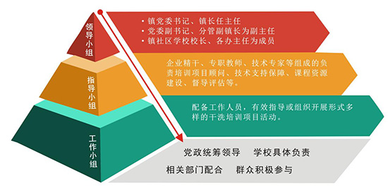 建立“領(lǐng)導(dǎo)小組+指導(dǎo)小組+工作小組”的工作體系和部門協(xié)同合作、數(shù)據(jù)共享機(jī)制。成立由鎮(zhèn)黨委書記、鎮(zhèn)長(zhǎng)任主任,黨委副書記、分管副鎮(zhèn)長(zhǎng)為副主任,鎮(zhèn)社區(qū)學(xué)校校長(zhǎng)、各辦主任為成員的共富課堂干洗培訓(xùn)工作領(lǐng)導(dǎo)小組。領(lǐng)導(dǎo)小組下設(shè)由企業(yè)精干、專職教師、技術(shù)專家等組成的負(fù)責(zé)培訓(xùn)項(xiàng)目顧問(wèn)、技術(shù)支持保障、課程資源建設(shè)、督導(dǎo)評(píng)估等指導(dǎo)小組。指導(dǎo)小組配備工作人員,有效指導(dǎo)或組織開展形式多樣的干洗培訓(xùn)項(xiàng)目活動(dòng)。形成“黨政統(tǒng)籌領(lǐng)導(dǎo)、學(xué)校具體負(fù)責(zé)、相關(guān)部門配合、群眾積極參與”的管理體制和運(yùn)行機(jī)制。
