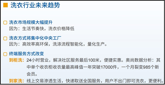 (二)淘汰落后工藝,開發(fā)洗護(hù)生態(tài)平臺(tái)。傳統(tǒng)門店從業(yè)者基本以技術(shù)型人才為主,對(duì)營(yíng)銷軟件工具認(rèn)識(shí)相對(duì)較低。通過(guò)與臺(tái)州市奧尚科技有限公司結(jié)對(duì)合作,從運(yùn)營(yíng)技術(shù)管理上全面培訓(xùn)指點(diǎn)學(xué)員。開發(fā)洗護(hù)生態(tài)平臺(tái),實(shí)現(xiàn)平臺(tái)下的同業(yè)和異業(yè)商戶互相合作,各自獨(dú)立經(jīng)營(yíng),財(cái)務(wù)獨(dú)立,同時(shí)可以共享C端客戶資源,運(yùn)營(yíng)上大大降低了獲客成本。為行業(yè)帶來(lái)最大的創(chuàng)新亮點(diǎn)是為全國(guó)傳統(tǒng)洗護(hù)門店低門檻進(jìn)入轉(zhuǎn)型互聯(lián)網(wǎng)化,基于奧尚平臺(tái)運(yùn)營(yíng),為傳統(tǒng)洗護(hù)門店收發(fā)管理,24小時(shí)智能收發(fā)柜,線上到家快遞取送洗衣服務(wù),洗衣工廠管理系統(tǒng)和門店,智能柜,合作門店,產(chǎn)品商城以及線上運(yùn)營(yíng)公司無(wú)縫對(duì)接。