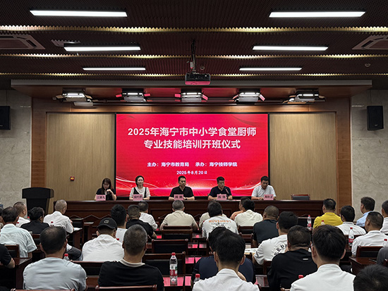 8月20日上午,2025年海寧市中小學食堂廚師專業(yè)技能培訓班(第五期)在海寧技師學院正式拉開帷幕。本次培訓為期5天,吸引了來自全市各中小學及相關(guān)餐飲單位的67名一線廚師參與。他們齊聚一堂,共同開啟一場以“技能提升、安全護航、營養(yǎng)優(yōu)化”為核心目標的專業(yè)學習與交流的新征程。