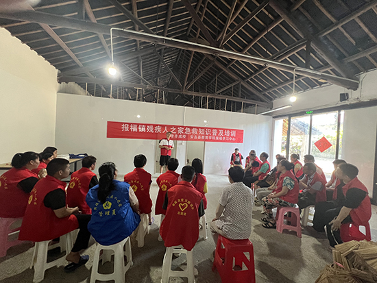 為增強(qiáng)殘障人士及工作人員的應(yīng)急救護(hù)能力,提升應(yīng)對(duì)突發(fā)意外的自救互救技能,8月22日上午,安吉縣社區(qū)教育學(xué)院報(bào)福學(xué)習(xí)中心聯(lián)合報(bào)福鎮(zhèn)殘疾人之家,特邀浙江省一級(jí)救護(hù)師丁柏偉老師,開展了一場(chǎng)生動(dòng)實(shí)用的急救知識(shí)普及培訓(xùn)活動(dòng),30余名殘障人士及工作人員積極參與。