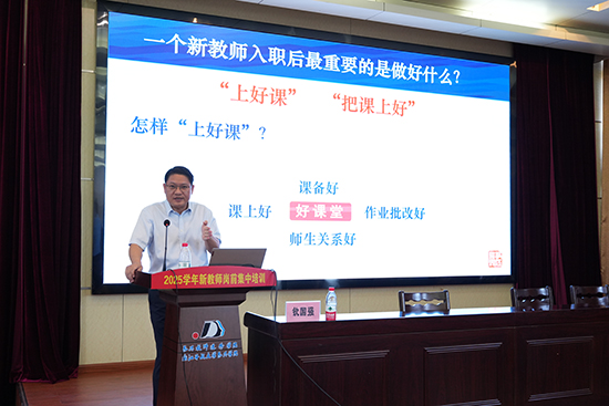 長興縣教育局黨委書記、局長欽國強開講第一課,他和新教師積極互動,圍繞“為什么當老師”這個問題,讓新教師再次明晰自我的職業(yè)選擇和角色定位,樹立育人初心。又從“你認為自己有哪些優(yōu)點適合于從事教師這個行業(yè)”“你認為目前還有哪些不足”“你準備成為怎樣的老師”等問題深入探討,在全場的思維碰撞中,大家對“教育”“教學”這兩個詞有了更深度的解讀和深刻的思考。長興縣教育局黨委副書記雷曉財進行《新教師的師德啟航——奠定職業(yè)生涯的道德基礎》的師德專題講座,他從教師要遵守的基本行為準則、合理把握教育懲戒的規(guī)則、師德師風事件處置原則三方面,進一步強化了新教師要恪守師德,守牢底線不觸紅線。