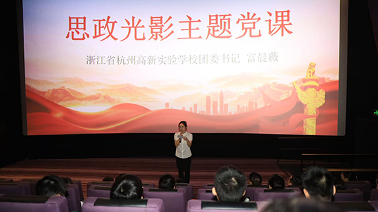 隨后,浙江省杭州高新實驗學校團委書記富晨薇帶來一堂精煉而深刻的主題黨課,從《南京照相館》這部電影出發,深入解析了三個關鍵歷史背景,讓在場觀眾對即將觀看的影片有了更深入的理解,也為后續的學習與思考奠定了基礎。浦潮少年宣講團的精彩演繹《未抵達的家書》將氣氛推向高潮,他們用真摯的情感和生動的語言,再現了抗戰時期烈士的堅定信仰與對親人的思念,讓人們仿佛穿越時空,感受到了那段烽火歲月中的家國情懷。