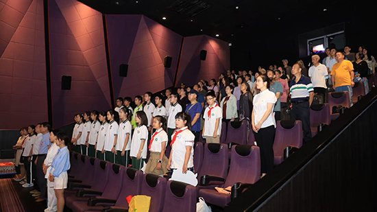 下午2時,活動在充滿儀式感的沉浸互動中開場。參與者們領取特制的“歷史課門票”,這不僅是入場憑證,更是開啟歷史大門的鑰匙,其上詳細標注著活動流程與互動指引,帶領大家一步步走進這段特殊的歷史課堂。緊接著,全體人員在少先隊員充滿朝氣的領唱下,齊聲高唱《歌唱祖國》。激昂的歌聲回蕩在影院,唱出了對祖國的熱愛與敬意,也拉開了本次活動的序幕。
