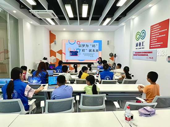 7月,第一期夏令營面向 4-6 年級的學生展開,為期兩周的課程內容精彩紛呈。其中,與浙江機電職業技術大學 “以夢為碼” 志愿服務團隊聯合開展的趣味編程課,成為了孩子們眼中的熱門課程。志愿者們通過生動有趣的教學方式,將原本晦澀難懂的編程知識融入趣味益智游戲之中,帶領孩子們走進奇妙的編程世界。在課堂上,孩子們積極思考、動手實踐,在編程的過程中不斷提升邏輯思維與動手操作能力,不少孩子表示,通過這次課程,對編程產生了濃厚的興趣。