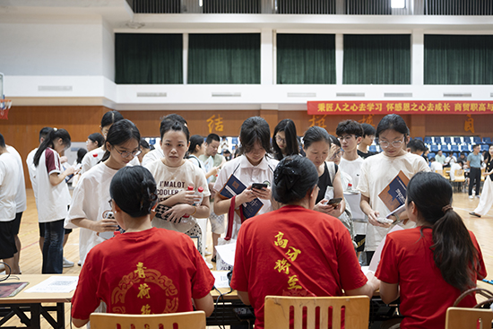 清晨,新生們懷揣著對職高生活的憧憬與期待,在家長的陪同下陸續抵達校園。報到工作按照商貿類、會展類、管理類、藝術設計類、學前教育類五大專業類別,分別設置了清晰的報到點。新生們根據錄取類別,有序前往相應點位進行材料確認。整個流程設計科學、指引明確,確保了報到工作高效順暢地進行,為新生們留下了專業有序的第一印象。