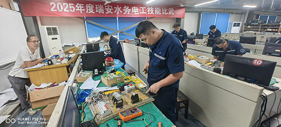 為全面提升生產技術人員對電氣設備的操作與維修能力,進一步加強應急處置水平,保障水務生產安全穩定,8月26日,瑞安水務有限公司于瑞安市職業中等專業教育集團學校(瑞安市錦湖社區學校)成功舉辦2025年度電工技能比武大賽。本次比賽由溫州公用事業發展集團瑞安水務有限公司工會主辦,瑞安市職業中等專業教育集團學校(瑞安市錦湖社區學校)承辦,來自瑞安水務及下屬單位的17名技術骨干同臺競技,展開了一場高水平、嚴要求的技能較量。