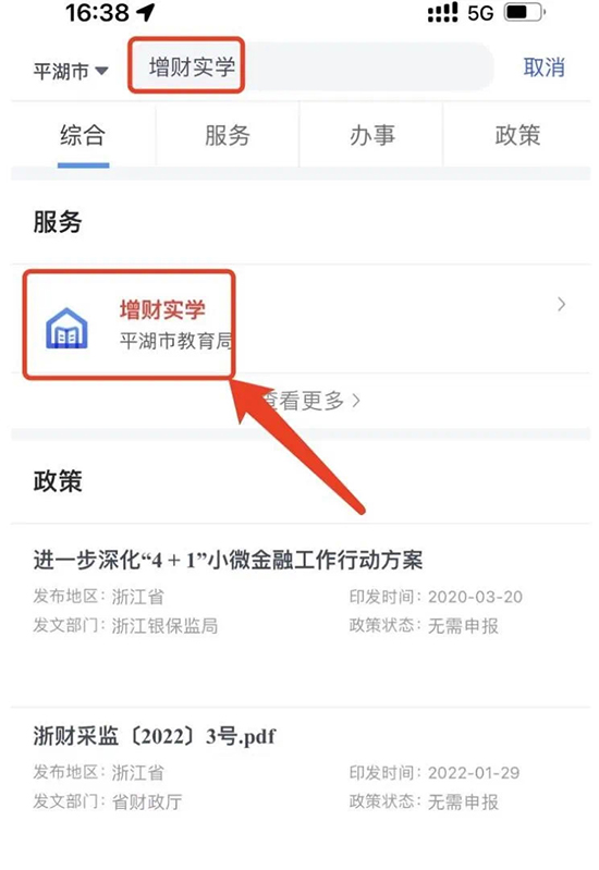 2、搜索“增財(cái)實(shí)學(xué)”,并進(jìn)入