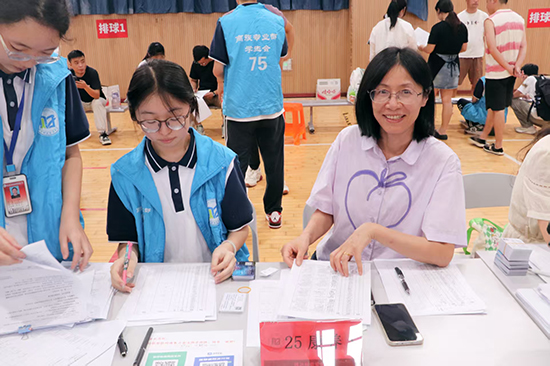 早晨7時(shí)30分開始,新生與家長(zhǎng)陸續(xù)抵達(dá)學(xué)校。學(xué)校黨員同志們以身作則,早早來到迎新現(xiàn)場(chǎng),向每一位遠(yuǎn)道而來的新生送上最誠摯的歡迎與祝福。行健館作為報(bào)到主會(huì)場(chǎng),早已布置妥當(dāng),各班班主任和學(xué)生志愿者們提前到崗,以飽滿的精神狀態(tài)迎接新生的到來。校園交通管理有條不紊,學(xué)校車輛引導(dǎo)組在校內(nèi)各路口引導(dǎo)車輛即停即走,全力保障校園交通暢通。學(xué)生宿舍同樣忙碌而溫暖,老師與學(xué)生志愿者協(xié)助新生辦理入住,主動(dòng)幫助搬運(yùn)物品,讓新生初入“家”門便感受到濃濃的歸屬感。