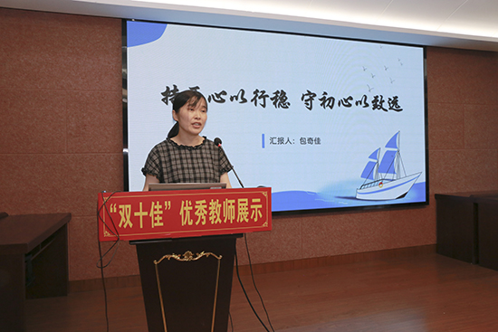 九位“雙十佳”優秀教師代表中既有校級領導,也有中層干部,更有一線教師。他們依次登臺,作了精彩紛呈的先進事跡分享。他們不僅展現出卓越的工作智慧與教育溫度,更傳遞出砥礪前行、躬耕教壇的榜樣力量。