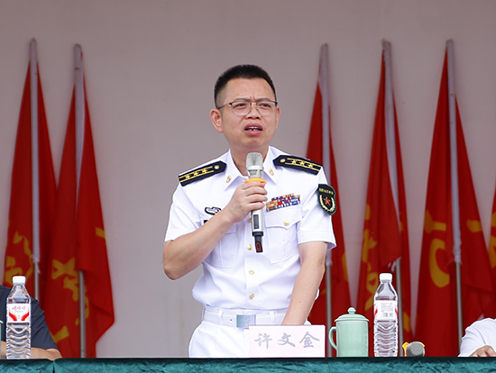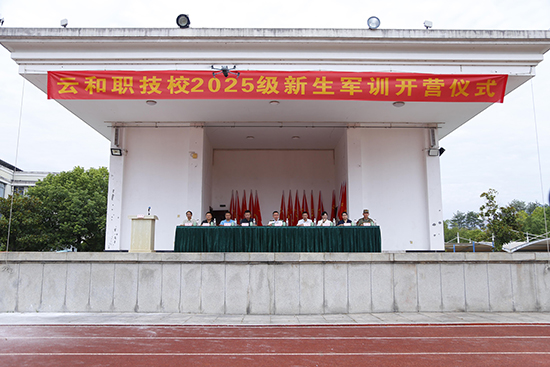 云和縣委常委、人武部政委許文金宣布云和職技校2025級新生軍訓正式開營。