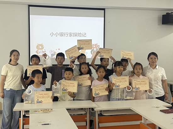 除了文化與藝術體驗,采荷街道社區學校還聯動雙菱社區,特別開展“小小銀行家”職業體驗活動。社區工作人員與志愿者化身“銀行導師”,用通俗易懂的語言講解貨幣起源、辨別真假幣、儲蓄理財等基礎金融知識,并模擬銀行柜臺場景,讓青少年輪流扮演“柜員”與“客戶”,體驗取號、辦理存取款業務等流程。孩子們認真學習點鈔技巧、填寫業務單據,在角色扮演中不僅掌握了基礎金融常識,更培養了理性消費與財富管理的意識。