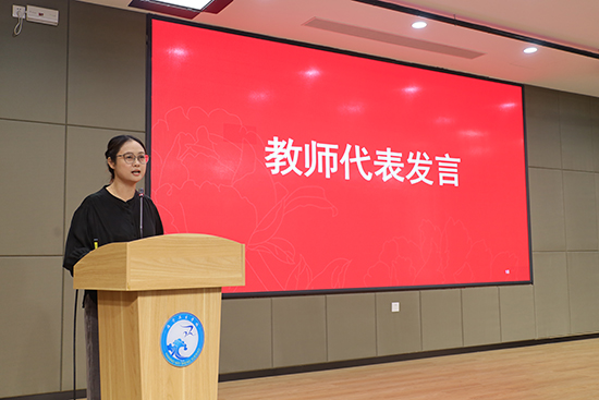 教師代表沈苞潔老師溫情寄語(yǔ),在陪伴和見(jiàn)證同學(xué)們成長(zhǎng)和蛻變,以閃耀賽場(chǎng)的同學(xué)為例,勉勵(lì)同學(xué)們堅(jiān)定信念,不忘初心,勇于挑戰(zhàn),珍惜過(guò)程,善待時(shí)光。