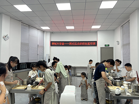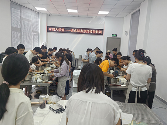 為進一步豐富社區居民精神文化生活,提升居民生活技能。8月31日,安吉社區教育學院孝豐分院依托 “孝城大學堂” 品牌,開展了一場生動實用的瑞士卷烘焙培訓,吸引近 60 名大小居民分場次參與學習。
