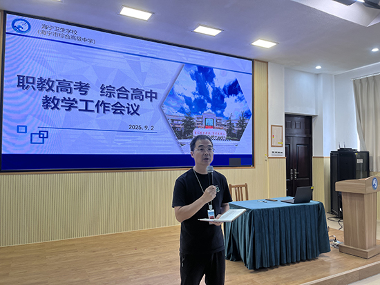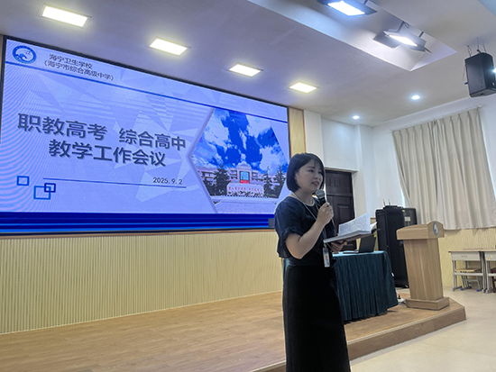 9月2日,海寧衛校(海寧市綜合高級中學)教務處組織召開職教高考和綜合高中教學工作會議,為新學期高職考備考與綜合高中辦學明確方向、細化舉措。校黨總支書記顧忠強、分管教學副校長沈孝麗、教務處處長李海偉及高考方向班級班主任、任課教師參會。