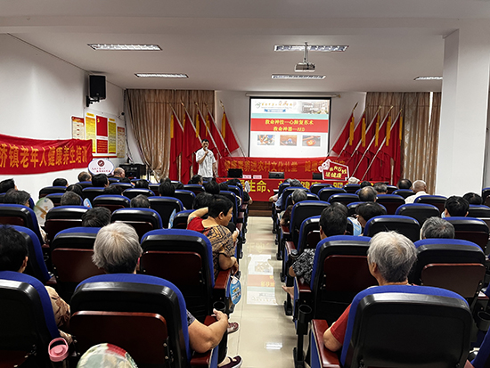 8月28日下午,諸暨市楓橋鎮(zhèn)社區(qū)教育學校連同諸暨市第二人民醫(yī)院中醫(yī)科副主任鐘強、預防保健科孟建鋒來到楓橋鎮(zhèn)永安新村,在文化禮堂內對老年人進行健康科普。