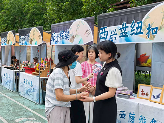 西陵雅集活動以“非遺文化傳承”為主線,聚焦西興本地非物質(zhì)文化遺產(chǎn)的活態(tài)傳承,集中展示西興盤扣、粽編、面塑、點茶、傳統(tǒng)繩結(jié)編織、巖彩琺瑯和茶點等民俗技藝精品,特邀本地手工藝人現(xiàn)場互動教學(xué),讓古老技藝煥發(fā)新生機。活動現(xiàn)場設(shè)置便民觀展區(qū),鼓勵居民近距離觀賞展品、參與手作體驗,切實感受“見人見物見生活”的文化傳承實踐。此次西陵雅集活動既為非遺傳承人提供了非遺技藝的展示窗口,也讓社區(qū)居民在家門口享受到了高品質(zhì)文化服務(wù),助力了“韻味古今 富美西興”目標(biāo)的實現(xiàn)。