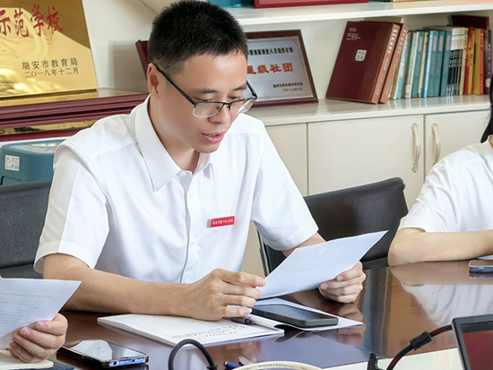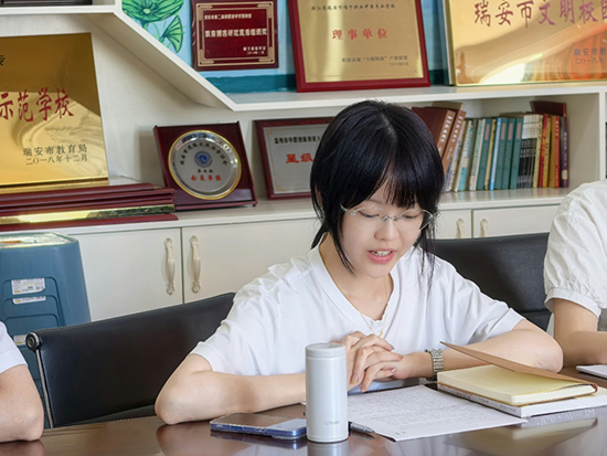 隨后,浙江省教壇新秀、溫州市名師張瑞祥老師代表老教師向新教師分享自己的成長經驗。張老師以電影《浪浪山小妖怪》為突破口,講述了自己從教20年間的點滴成長故事。從初登講臺到制定職業發展的兩個五年計劃,從起初蹭課的“旁聽生”到深耕課堂的團隊賽課經歷,她用自己的經歷告訴新教師們要在“浪浪山”中走出自己的路,并提出三個成長關鍵詞:扎根課堂,保持好奇,守住初心。此外,以自身經歷為例,張老師對名優教師如何帶領團隊提出了三點建議,即搭建共享平臺、學會試錯與包容、聚焦共同目標,并希望名優教師能夠從獨立的登山者成長為一名帶領者。