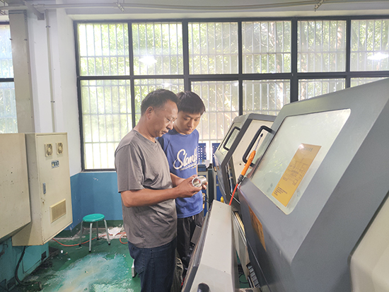 湖州創(chuàng)峰動力科技有限公司專注高端電機及主軸制造,此前與學校已合作完成310件產品加工。今年暑期,團隊承擔了479件電機轉子的車削加工任務,該電機轉子用于數(shù)控機床電機,但由于產品原材料為硅鋼片鑄鋁后沖壓而成,易導致裝夾損傷、刀具磨損大。團隊從夾具設計到刀具選型,反復試驗不同材質刀片與切削參數(shù),最終攻克難題,贏得企業(yè)高度認可。