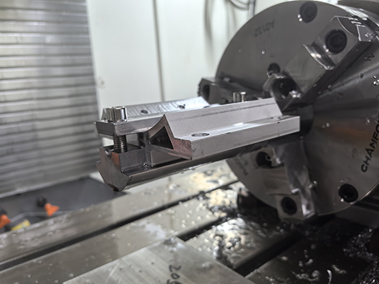 與長期合作企業(yè)浙江力控科技再度聯(lián)手,本次暑期訂單是電機底座與編碼器支架的加工,訂單數(shù)量共590件。主要用于實驗設備電機編碼器定位作用。面對斜孔加工的技術難點,師生團隊共同研討,創(chuàng)新采用四軸旋轉工藝,設計專用檢具,最終保質保量完成任務。截至目前,校企合作已累計完成2157件產品加工,并合作研發(fā)兩套設備。