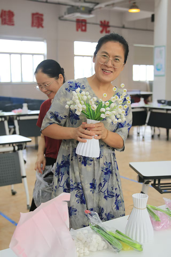 活動(dòng)現(xiàn)場(chǎng)特別設(shè)計(jì)了兩大互動(dòng)區(qū)域:“趣味滾滾樂”借助飲料罐與臺(tái)球桌,讓老師們?cè)谳p松挑戰(zhàn)中贏取精致甜品,舒緩壓力、收獲驚喜;“鈴蘭花手工DIY”則準(zhǔn)備了豐富的材料包,在工作人員指導(dǎo)下,老師們親手制作象征“幸福歸來”的鈴蘭花,賦予節(jié)日以手作的溫度與儀式感。每一份自帶心意的手工作品,都可隨身攜帶,成為這個(gè)教師節(jié)的獨(dú)特紀(jì)念。