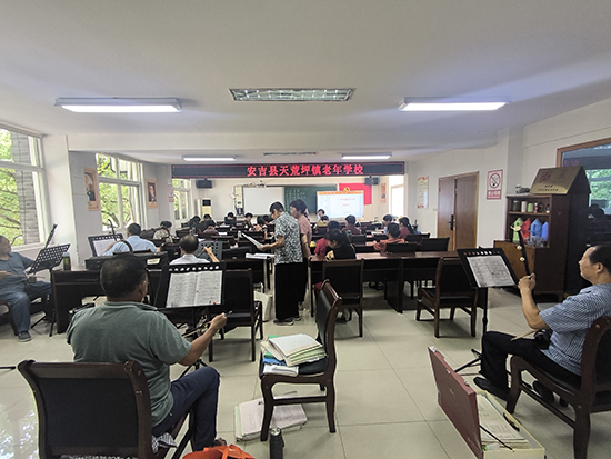 9月11日,安吉縣社區教育學院天荒坪分院(天荒坪成校)老年學校戲曲班迎來新學期首次活動。三十余位老年學員在王惠芬老師的指導下,以飽滿熱情投入經典戲曲曲目的演練,現場二胡伴奏悠揚婉轉,展現傳統藝術與銀齡活力的交融之美。