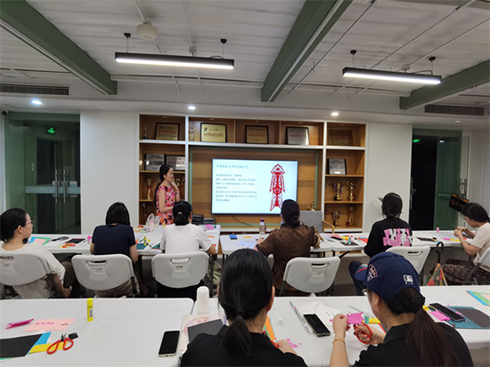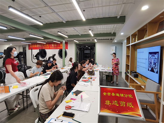 本次活動的核心亮點,在于邀請到了安吉縣非遺剪紙項目的核心傳承人——蔣娟老師親自授課。作為深耕剪紙領域多年的資深匠人,蔣娟老師不僅擁有精湛的剪紙技藝,更擅長將非遺文化的內涵與通俗化的教學方式相結合,讓零基礎的學員也能快速入門。活動伊始,蔣娟老師先以生動的語言為學員們講解了安吉剪紙的歷史淵源:從舊時民間節慶時的窗花、喜花,到如今成為省級非遺項目的文化傳承,每一段故事都讓學員們對這門古老技藝多了一份敬畏與好奇。隨后,她還現場展示了多幅經典剪紙作品,細膩的線條、鮮活的形象,瞬間點燃了學員們的創作熱情。