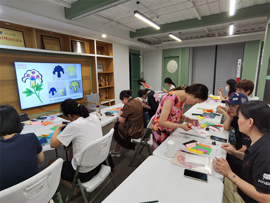 在掌握基礎技法后,活動進入了最令人期待的創作環節。學員們紛紛拿起剪刀、彩紙,按照蔣娟老師的指導,先在紙上輕輕勾勒出雞冠花的輪廓——有的設計成綻放的單朵形態,有的則搭配葉片組成雅致的花束,還有的加入了蝴蝶、蜜蜂等元素增添生機。裁剪過程中,現場不時響起剪刀“咔嚓咔嚓”的清脆聲響,學員們專注的眼神、認真的神情,成為了活動現場最動人的畫面。遇到復雜的花紋,大家還會互相交流經驗,或是向蔣娟老師請教,濃厚的學習氛圍感染著在場的每一個人。