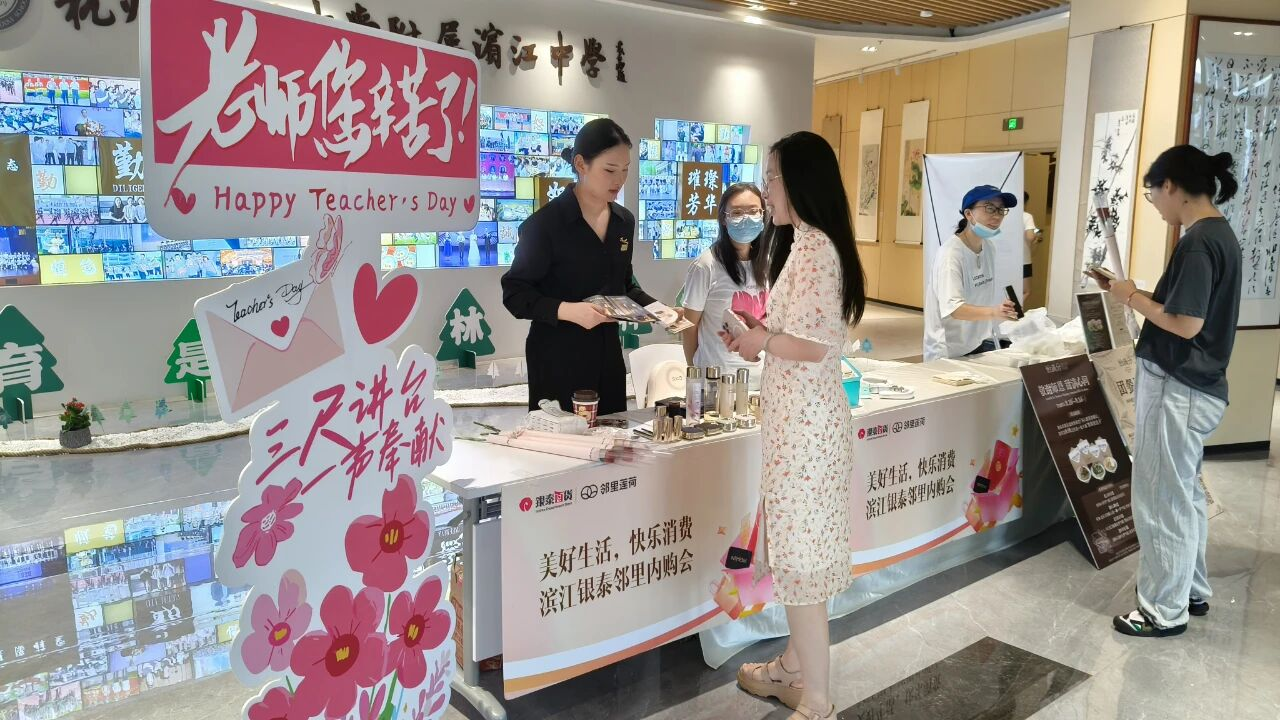 第41個教師節(jié)來臨之際,杭州濱江西興水電社區(qū)聯(lián)合濱江銀泰在轄區(qū)的共建單位杭高濱江中學(xué)開展“情暖教師節(jié)·服務(wù)進校園”活動,將貼心服務(wù)與專屬福利送到教師身邊,致敬辛勤園丁。
