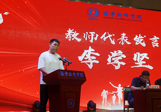 教師代表李學(xué)堅(jiān)以“鍛造可持續(xù)的競(jìng)爭(zhēng)力——讓學(xué)習(xí)成為一種習(xí)慣”為題發(fā)言,鼓勵(lì)學(xué)生從底層、中層、頂層三個(gè)維度建立成長(zhǎng)型思維,同時(shí)呼吁教師順應(yīng)教育變革,實(shí)現(xiàn)從“講師”到“教練”的角色轉(zhuǎn)變。