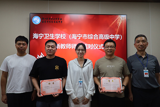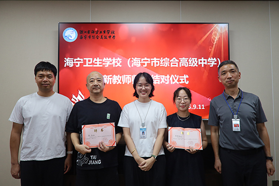 9月11日,海寧衛生學校(海寧市綜合高級中學)在黨員活動室隆重舉行新教師入職暨師徒結對儀式,傳承教育薪火,共筑育人夢想。學校黨總支書記顧忠強、校長陳杰、學工處處長陳燕等領導出席活動。