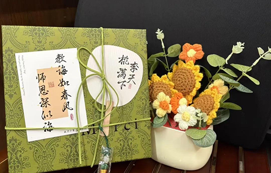教師節(jié)前夕,校領(lǐng)導(dǎo)化身“驚喜使者”,將向日葵和精致茶食禮盒,逐一擺放在每位教職工案頭。教師節(jié)當(dāng)日推開辦公室門,這份突如其來的心意,讓每位教職工的幸福感從清晨開始蔓延。