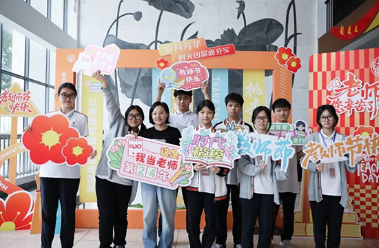 “老師,您辛苦了”“教師節(jié)快樂”“桃李滿天下”“歲月芳華,時(shí)光因你而充實(shí)”在寫滿祝福語的主題背景前,老師們手持節(jié)日禮品與特色手牌定格留影。燦爛的笑容、溫馨的互動(dòng),每一張合影都記錄著“2025教師節(jié)”的“獨(dú)家記憶”。
