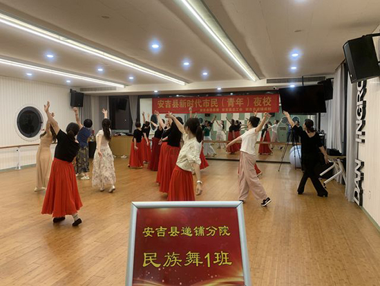 9月14日晚,安吉縣社區(qū)教育學(xué)院遞鋪分院的舞蹈教室內(nèi)燈火通明,樂(lè)聲悠揚(yáng)。31位來(lái)自不同行業(yè)的學(xué)員齊聚一堂,在專業(yè)舞蹈老師潘虹的帶領(lǐng)下,沉浸于一場(chǎng)精彩紛呈的民族舞教學(xué)體驗(yàn)之中。