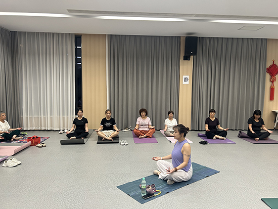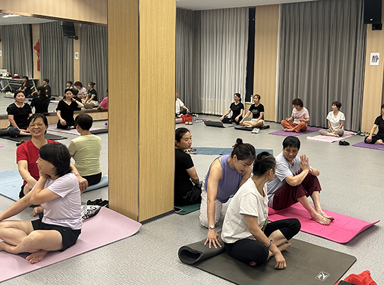 課堂上,曹老師從呼吸調節教起,借著柔和的燈光,逐一對學員的動作進行細致糾正:“腰背貼緊瑜伽墊,不要聳肩”“手臂向上延展時,感受腋下的拉伸”。耐心的指導讓初次接觸瑜伽的居民快速找到狀態,也讓有基礎的學員更精準地掌握發力點。居民小章是一名上班族,她笑著說:“白天對著電腦久坐,晚上來練瑜伽特別舒服,比在家刷手機有意義多了!”居民李阿姨則表示,晚上練完瑜伽睡眠都變好了,打算每周都來。