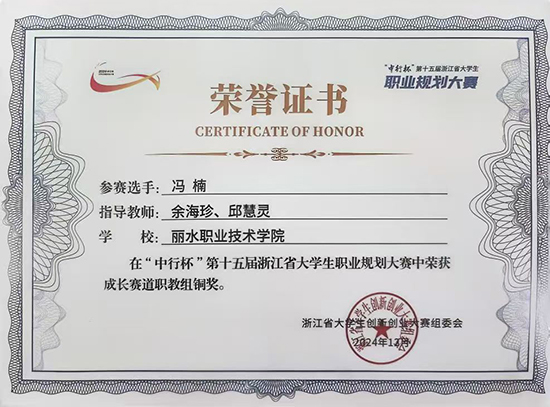 在大學期間,她收獲的榮譽遠不止技能競賽獎項:浙江省政府獎學金、校一等獎學金、三好學生、禁毒微視頻大賽一等獎、寒假社會實踐優秀個人、校優秀團員、校勞動標兵、德潤麗職優秀個人、校第十五屆“十佳大學生”……這些榮譽覆蓋學習、實踐、學生工作等多個領域,展現出一名優秀紹財旅學子全面發展的亮眼姿態。