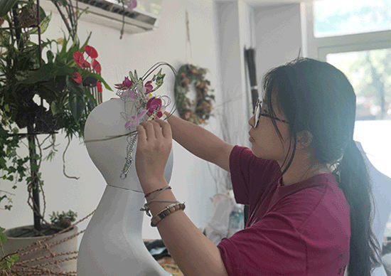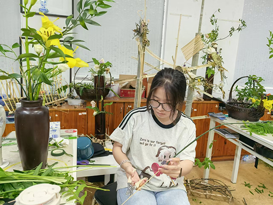 回溯她的競賽之路,每一步都扎實有力:2025年浙江省職業院校技能大賽高職組“花藝”賽項中,她摘得銀獎,為沖擊國際賽場積蓄力量;2024年中國插花花藝行業技能競賽華東賽區學生組,她再獲三等獎,在區域舞臺上站穩腳跟。從區域賽場到國際舞臺,馮楠用一系列亮眼成績,詮釋著“技無止境”的追求,也讓紹財旅的育人成果在技能競賽的賽道上持續閃耀。