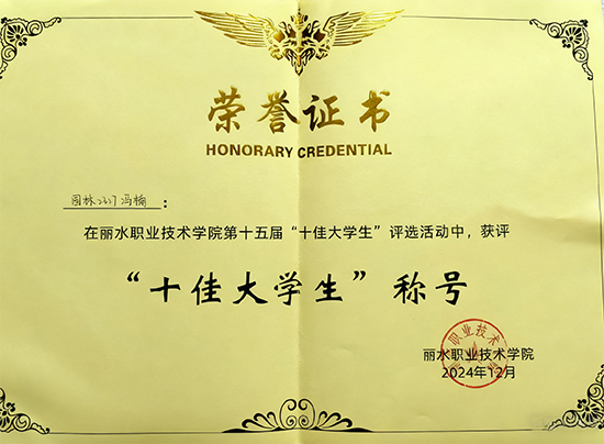 從紹財旅畢業後,馮楠考入麗水職業技術學院林業科技學院園林2327班,開啟了新的成長旅程。她始終秉持著在母校養成的優良作風,不僅在專業學習上持續精進,還主動承擔起學院輪值主席的職責,憑借較強的組織協調能力和團隊合作精神,將學生工作打理得井井有條。