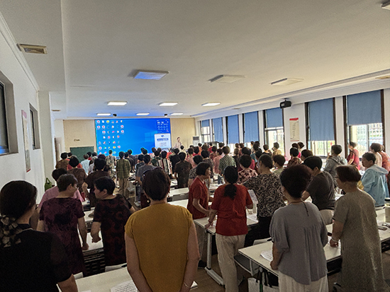 開班伊始,深受學員們喜愛的任妮亞老師便照例帶領大家進行基礎的發聲練習。“咪咪咪……嘛嘛嘛……”在任老師耐心細致的指導下,學員們挺直腰板,專注地練習著氣息控制和發聲技巧,悠揚的練聲此起彼伏,回蕩在教室的每一個角落,展現了老有所學、老有所樂的積極風貌。