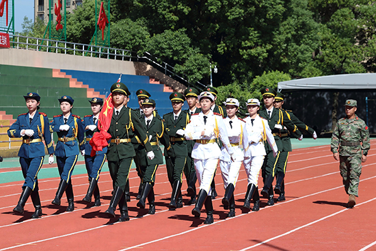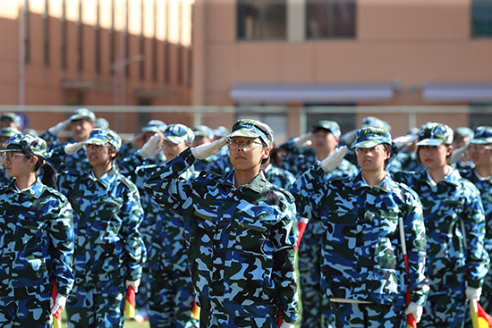 檢閱時刻,23個軍訓方陣整裝肅立,迎接百官街道人武部部長陸銀鋒和校黨委副書記、校長蔡建的檢閱。一聲聲問候飽含關懷,一句句回應充滿力量。這不僅是五天磨礪的成果,更是職教學子超越自我、砥礪前行的青春誓言。