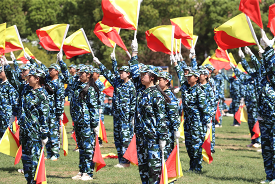 隨后,200名同學帶來海軍旗語操展示。軍旗飄揚間,每一個動作都如同奏響一曲歌頌紀律、協作與忠誠的雄壯軍樂,完美詮釋了嚴謹、協作、勇敢、忠誠的精神風貌。