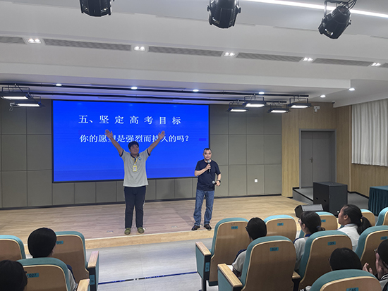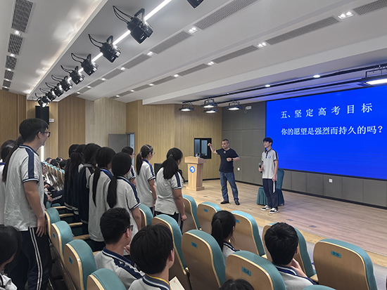 隨后,徐躍斌老師帶來“做最好的自己”的主題演說。他圍繞“能力很重要,比能力更重要的是態度”“努力很重要,比努力更重要的是選擇”“勤奮很重要,比勤奮更重要的是信念”“成功很重要,比成功更重要的是成長”“堅定高考目標,信念持久而強烈”等五個核心觀點,結合真實案例深入淺出地講解,為高三學子注入強勁心理動能。演說尾聲,多名學生主動走上臺,高聲喊出自己的高職考目標,堅定的誓言感染了在場每一個人。