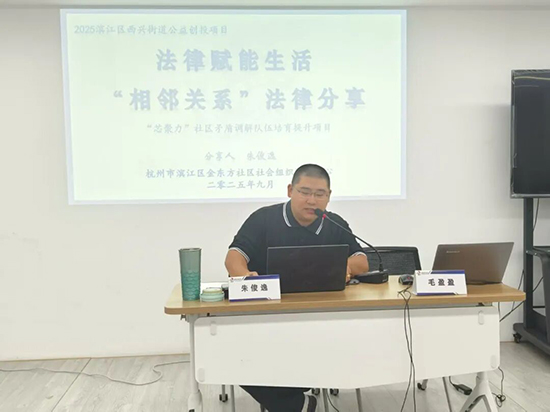 9月15日,杭州市濱江區(qū)西興街道金東方社區(qū)老年學堂成功舉辦了一場以“鄰里關系”為主題的普法講座,特邀專業(yè)律師朱俊逸擔任主講人。