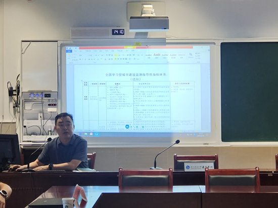 王華立院長對此次學習型城市創建的重要意義和基本情況進行了介紹,并對全國學習型城市建設監測指導性指標體系的各項指標、監測點、責任人及任務分工等重點內容進行了詳盡的說明。