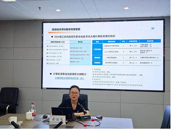 18日上午,浙江省教育廳職成教教研室教研員俞佳飛帶來《浙江省中職信息技術學科課堂教學改革交流》主題講座,為本次教研活動注入了前沿理念與專業智慧。