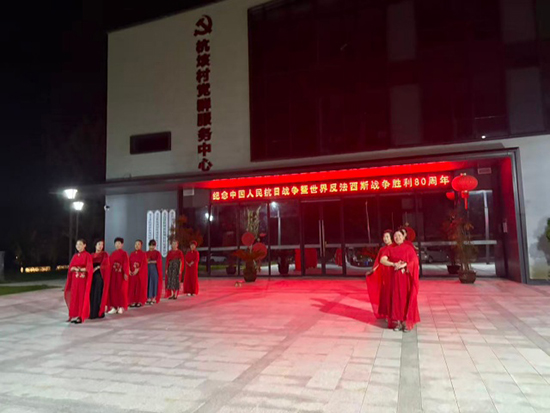 杭垓村村委廣場燈火通明,氣氛熱烈。近20位形體班成員,在指導老師章蕓的悉心指導下,伴隨著激昂奮進的曲目《共和國走向未來》,進行了精彩的走秀排練表演。學員們步伐穩健,儀態大方,一襲紅裙在夜色中格外耀眼,象征著對共和國的熾熱情懷和對未來的美好憧憬。她們用形體語言演繹了共和國發展的壯闊歷程,展現了新時代農村居民積極向上、追求美好生活的精神風貌。