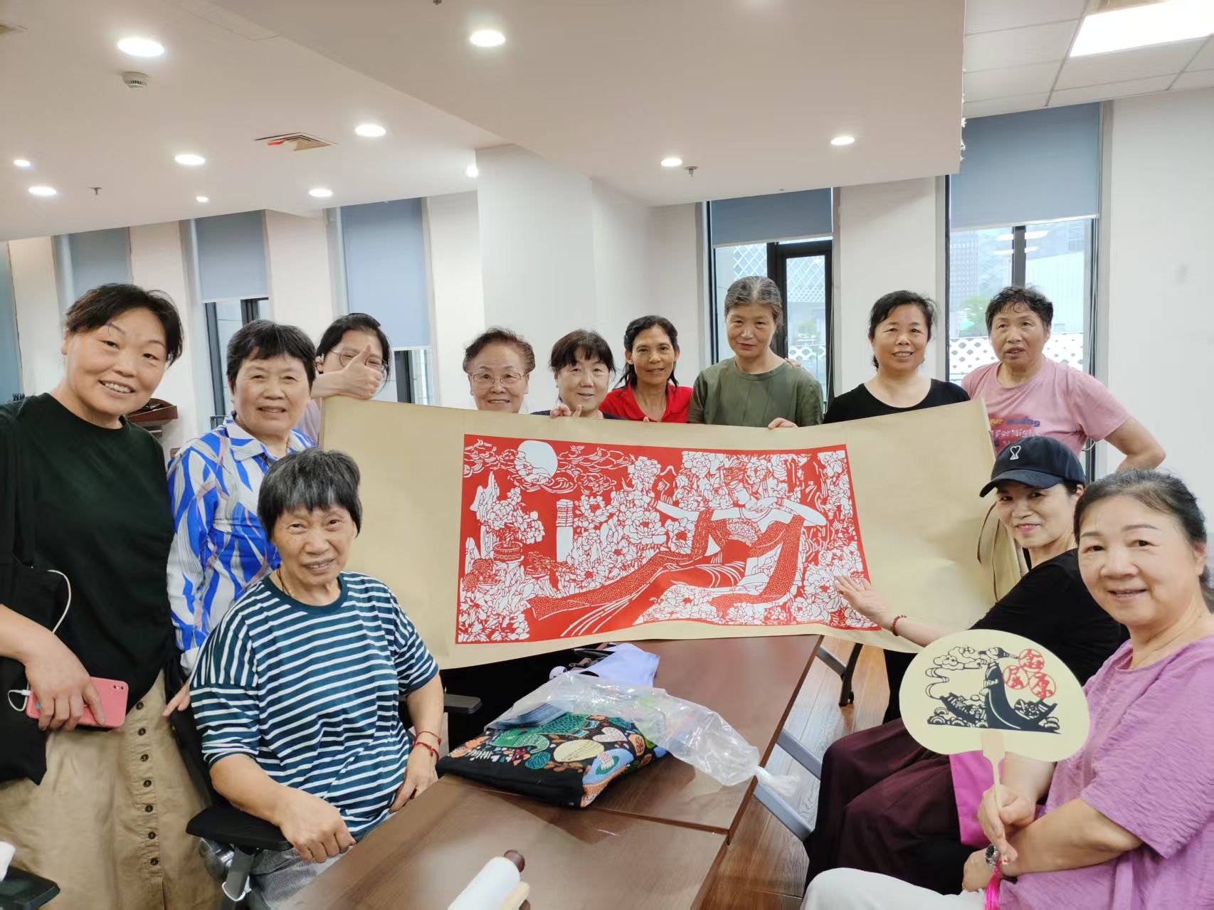 圍繞非遺文化傳承主題,浦沿分院開設非遺手工班,學員通過三期課程親手制作非遺絨花胸針、繩結編手繩、藤編包包、四大名錦裝飾畫、大漆手提包、螺鈿等作品,深度感受非遺魅力;偉業社區開設剪紙班,不僅鍛煉學員身心機能,更傳承中華傳統文化,教師李明采用 “示范 + 實操”“線上 + 線下” 結合的教學模式,讓零基礎學員也能輕松上手。